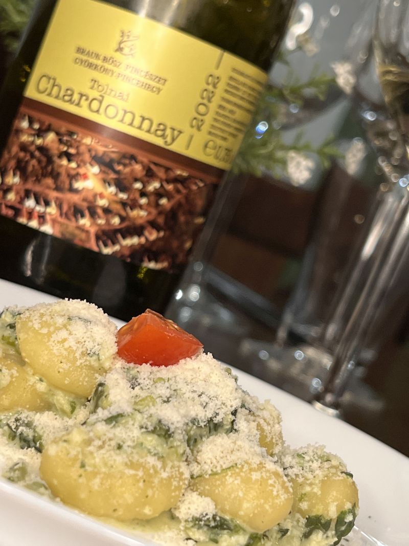 Öt fogásos menüvel készülünk: Bruschetta helyi sonkával, Saját Ricottás Gnocchi, Pizza györkönyi szalámival, Saltimbocca helyi balzsamecetes salátával és végül mi más mint a Tiramisu következik. Az ételeket saját borainkkal együtt kínáljuk.